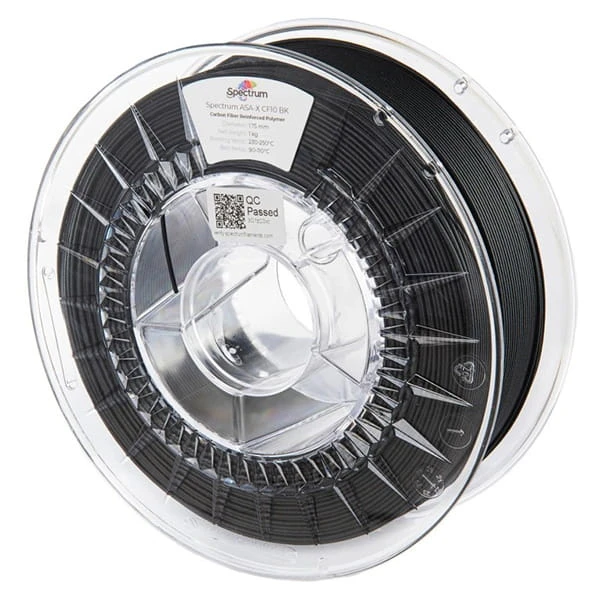 Oddajemy w ręce użytkowników odporny na ekspozycję zewnętrzną, taką jak światło słoneczne (UV) i wilogć (hydroliza) filament o module rozciągania ponad 7,5 GPa i odporności termicznej 101°C. Jednocześnie Spectrum ASA-X CF10™ charakteryzuje się niskim skurczem i niezwykłą jak na materiały techniczne o porównywalnych właściwościach, łatwością w drukowaniu. Wszytko to w połączeniu z carbonową matowością powierzchni, skutecznie maskującą warstwy drukowanych modeli sprawia, że Spectrum ASA-X CF10™ stał się bardzo popularnym wyborem pośród społeczności druku 3D.